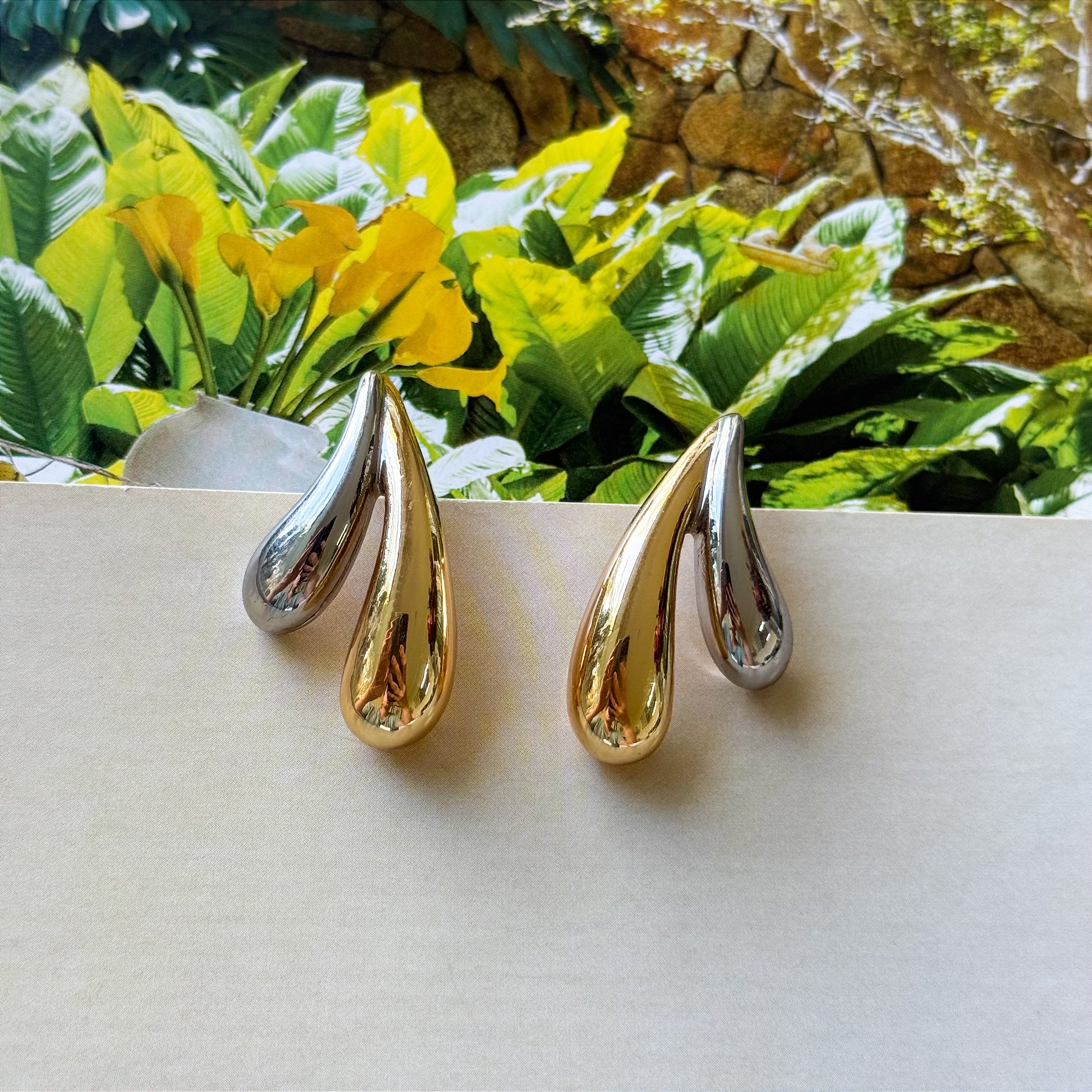 Este brinco possui acabamento em banho de ouro de qualidade e opção duo banho que une o brilho do ouro com a elegância do ródio branco, garantindo um visual delicado e resistente ao desgaste diário. Cada par é cuidadosamente finalizado para manter seu aspecto liso e polido. A embalagem inclui um par de brincos, pronto para presente ou uso imediato.
