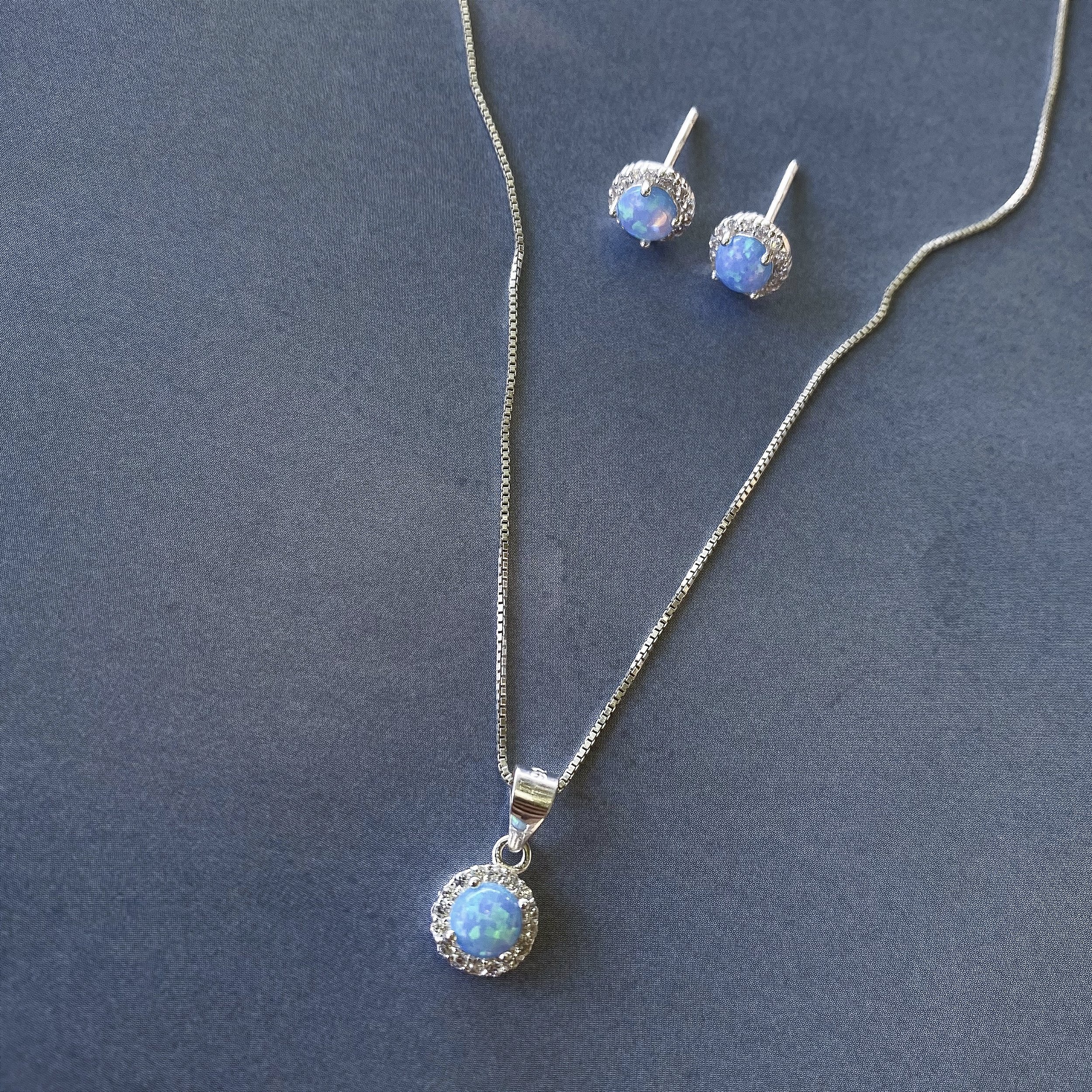 Conjunto opalina em prata 925, cravejado em zircônias cristais.