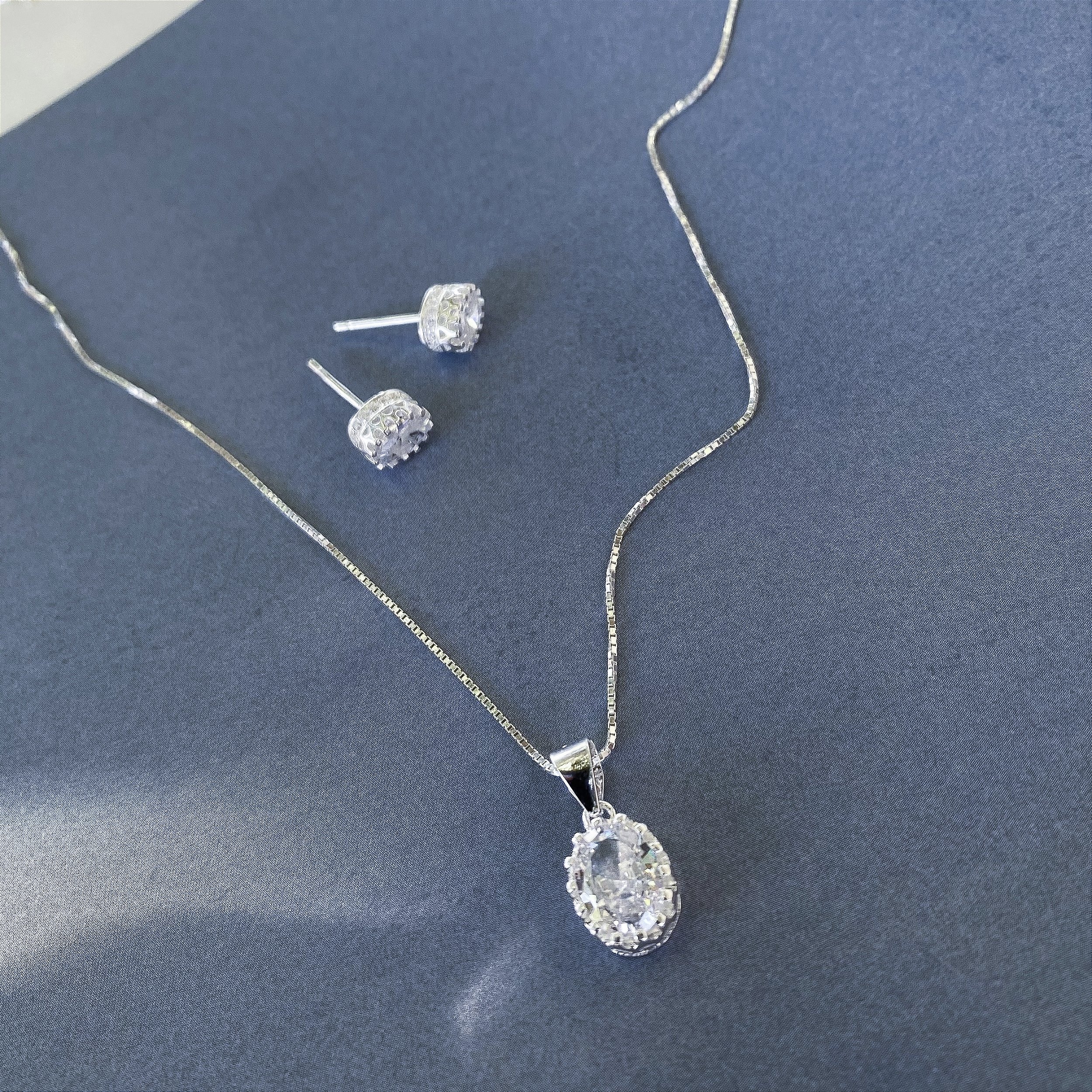 Conjunto em prata 925, ponto de luz cravejado em zircônia cristal.